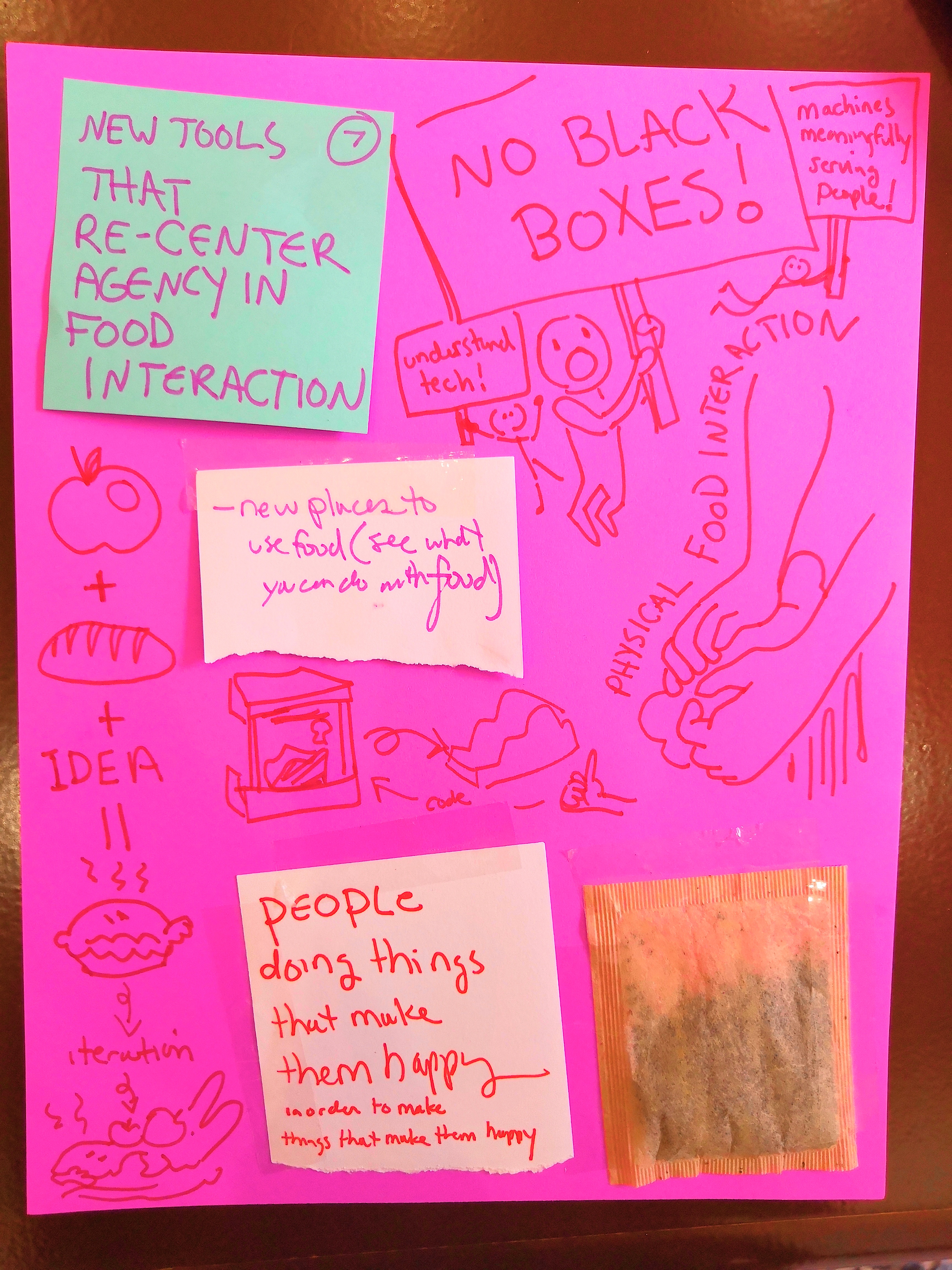 Our CHI’18 workshop addressed emerging food-tech trends and controversies, aiming to extend the existing body of HFI research with new insights sought via co-creative activities and discussion.